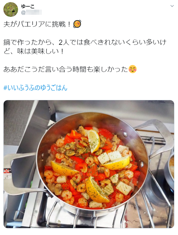 11/15(金)~11/23(土・祝)の期間中に、家族で食べるご飯を作り、ハッシュタグ「#いいふうふのゆうごはん」をつけて、SNSに写真を投稿してください。できれば普段料理担当ではない方が、この機会にチャレンジしてみてください!