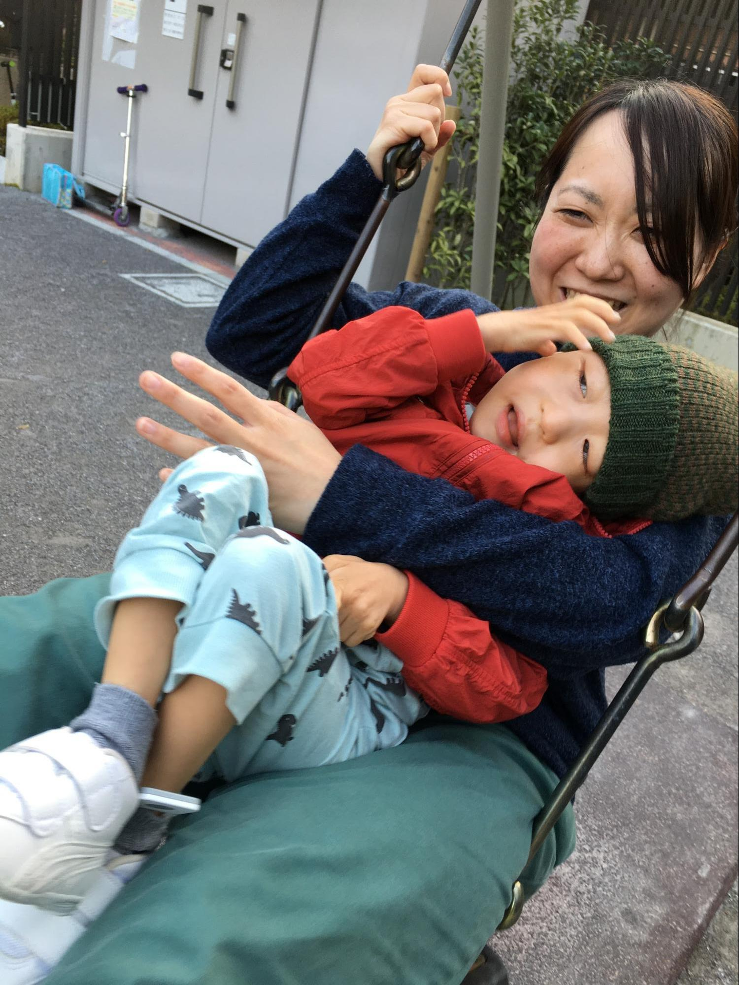 また、お天気が良くお子さんの体調が安定しているときには、お散歩にでかけたり、公園で遊んだりもしています。コロナ感染の不安もありますので、現在は親御さんと相談して承諾を得た上で、人が少ない場所を選び、短い時間で出かけています。