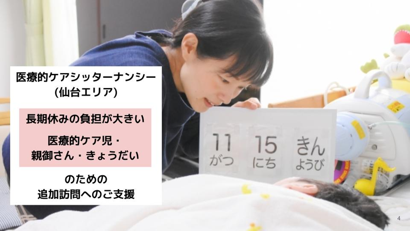 【寄付受付中】「「医療的ケアシッターナンシー」追加訪問による長期休み支援(仙台エリア)