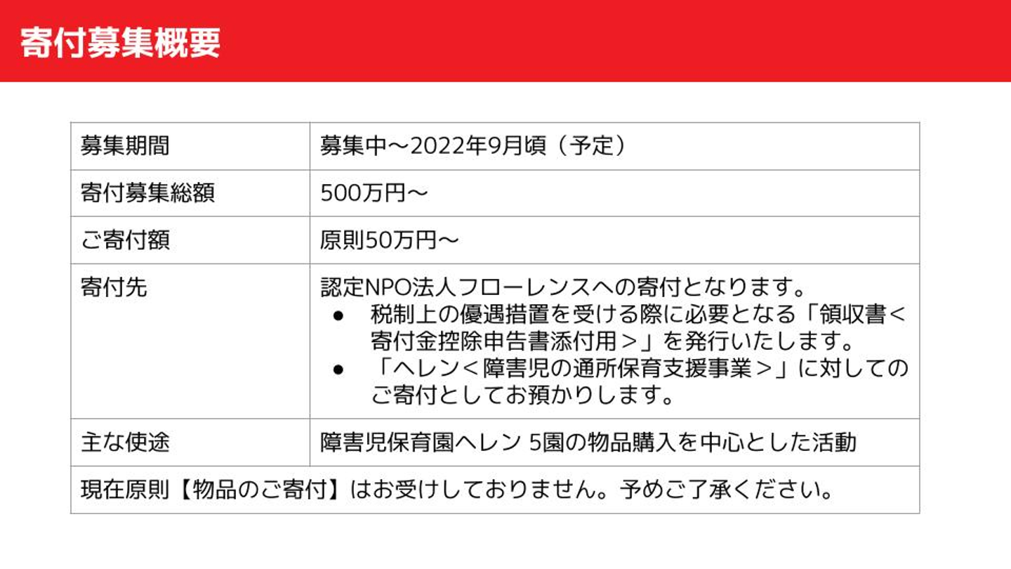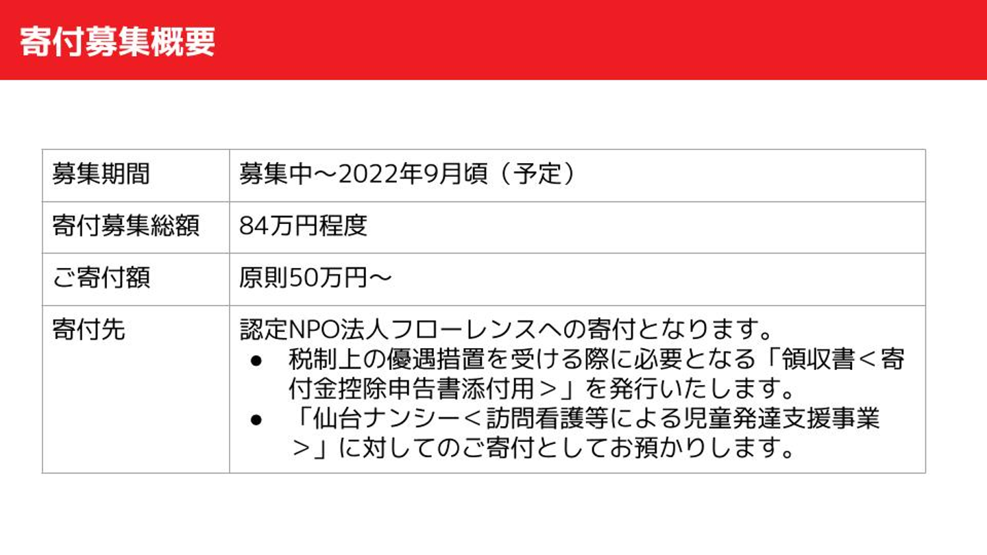 現在、フローレンスが新たに寄付を募集しているプロジェクトは以下となります。