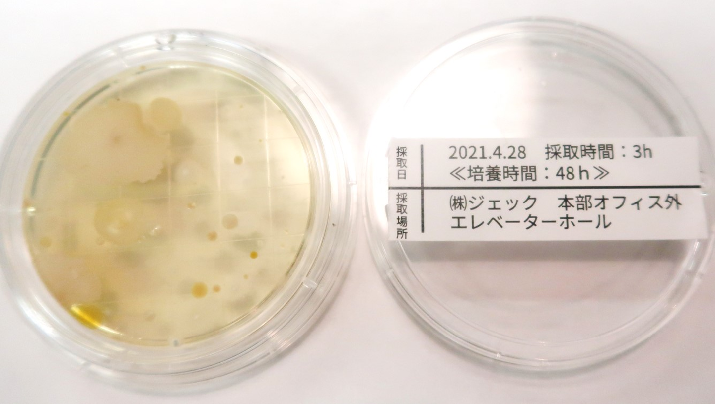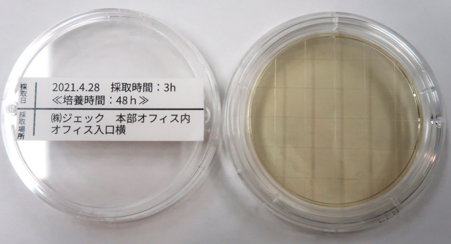 オフィス内のいくつかの場所に寒天培地を設置し、その場所の菌数を測定します。
