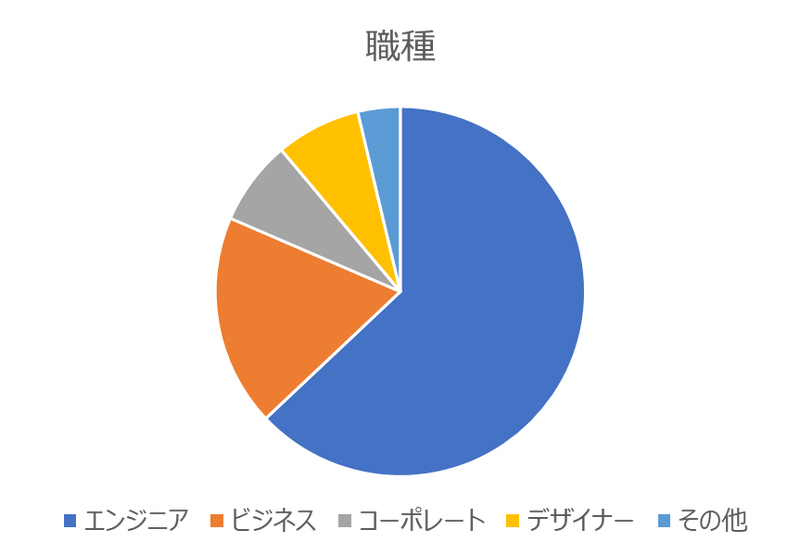 ご参加いただいた方々の職種割合は6割以上がエンジニア職でしたが、ビジネス(PdM・マーケティング等)職の方にもご参加いただけました。