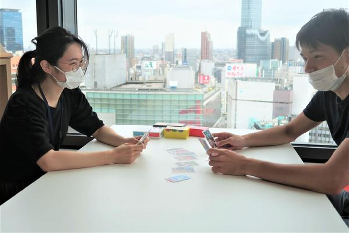 多田)今回は就業後にサマーインターン参加者の中で希望した人と社員とでボードゲーム交流会を行いました。インターンはコース毎に分かれて実施するので、就業中はインターン生同士が交流する機会は少ないのですが、この交流会がインターン生同士の交流にも繋がるといいなと思ったのが始まりです。コロナ禍なので感染予防を考慮して、それぞれ食事後に行い、安全性も考えた上で実施しています。