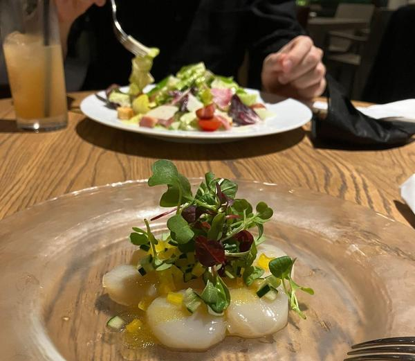 ディナーは初めてだったのですが、とても良かったです。特に写真にあるお肉が美味しくて、イタリアンなのに和風の味付けでした。ちなみに自分は料理の写真を取り忘れたので、妹が撮影した写真をもらいました。