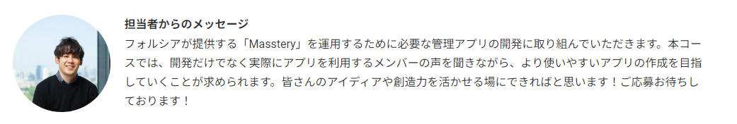 フォルシアのサマーインターンの特設ページにはメンターの顔写真が載っているのです。
