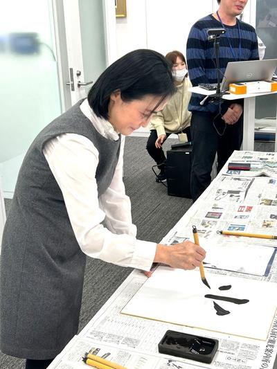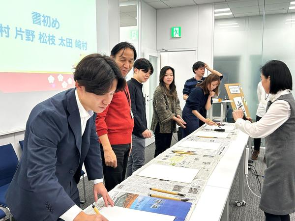 初会では代表屋代の挨拶に始まり、毎年恒例の「フォルシア版今年の漢字」の書初め、そして新入社員によるお正月らしいお楽しみ企画が行われました。
