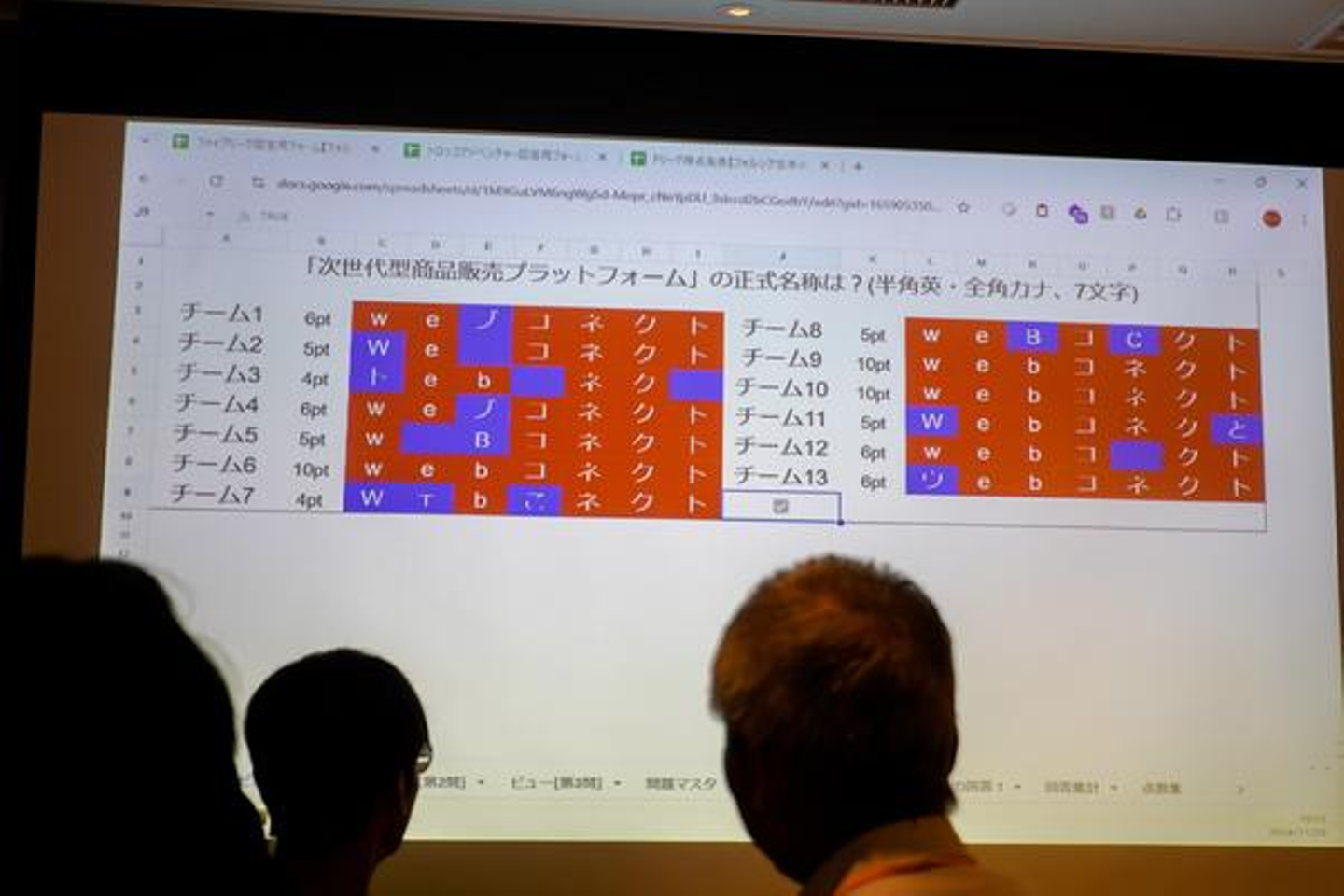 回答者の皆さんにはGoogleフォームを使って一人につき一文字ずつ回答を送信していただき、各チームで何文字正解できたかを競うという内容です。