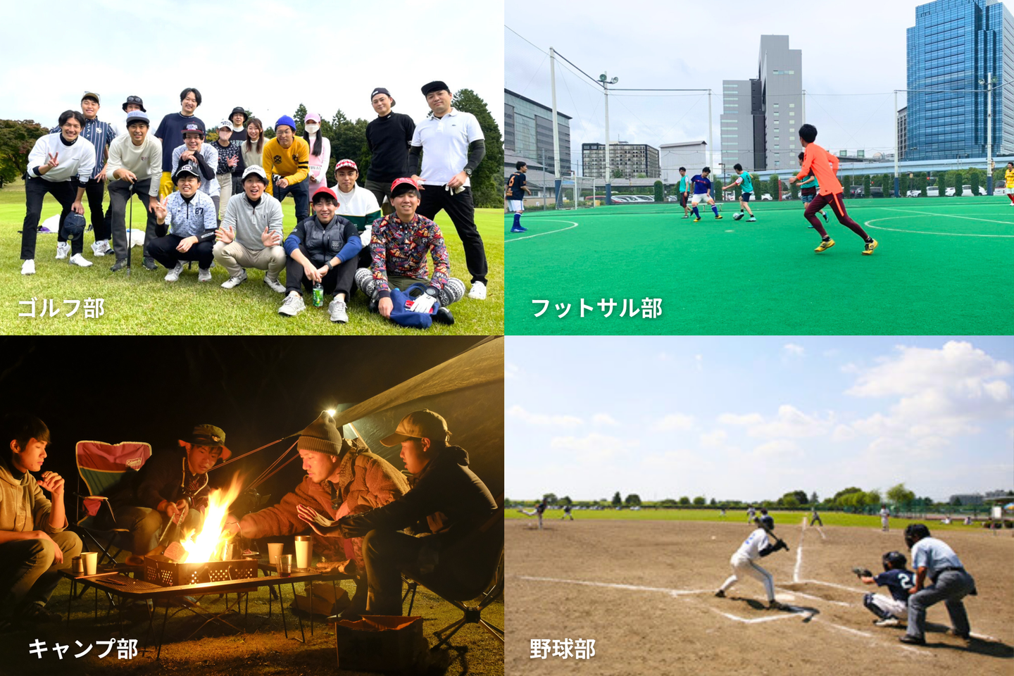 ゴルフ部、フットサル部、キャンプ部の他、野球部、テニス部、e-スポーツ部…などなどがあり、部署の垣根を超えて交流が行われています!