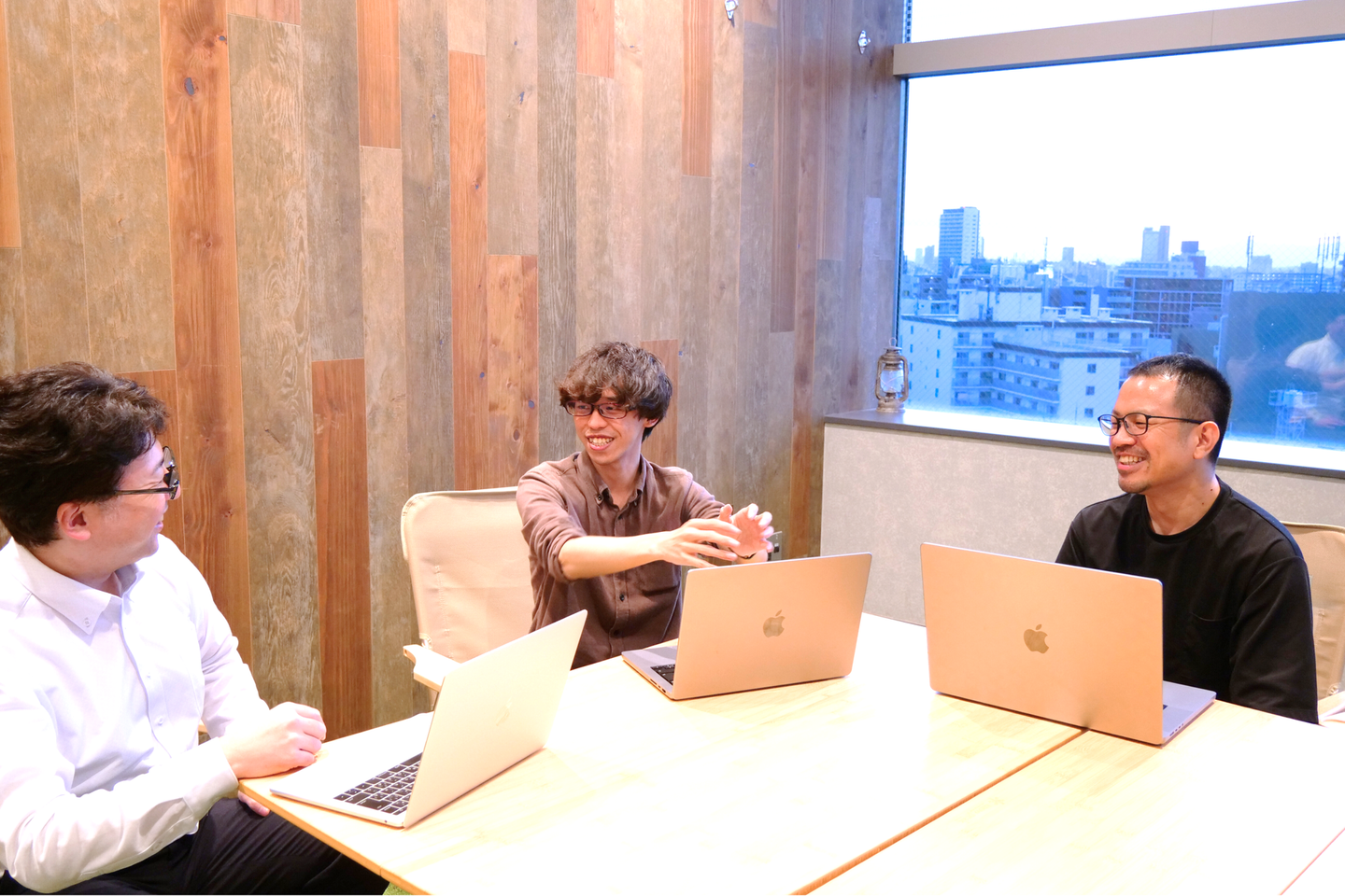左:エンジニア組織副責任者Yさん 中央:Mさん 右:エンジニア組織責任者Wさん