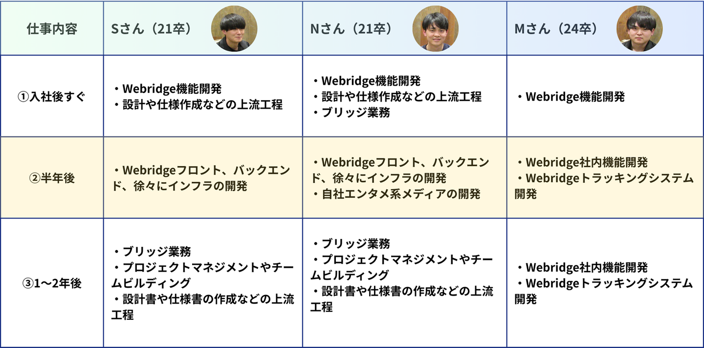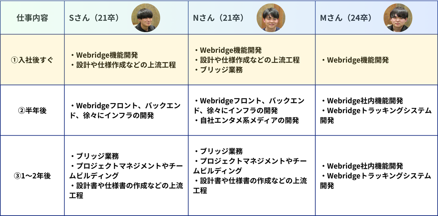 【②半年後以降の業務】フルスタック開発、ブリッジ業務、Webridge社内機能開発、トラッキングシステム開発