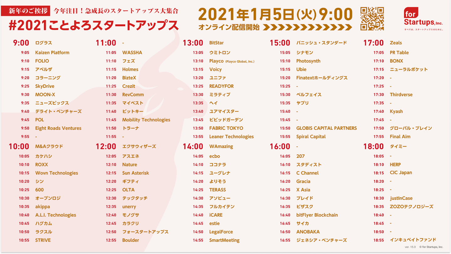 タイミングが合わずにご参加が叶わなかった企業や私たちからのお声がけが行き届かなかった企業もありましたが、共に成長産業を創るみなさまの2021年が素晴らしい日々となりますように心から願っております。