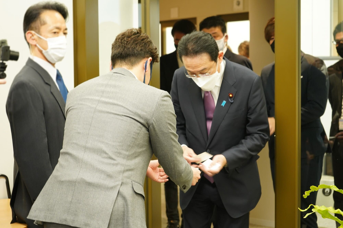 弊社代表志水と立ち話される岸田首相!社内メンバーのテンションが一気に上った瞬間です。