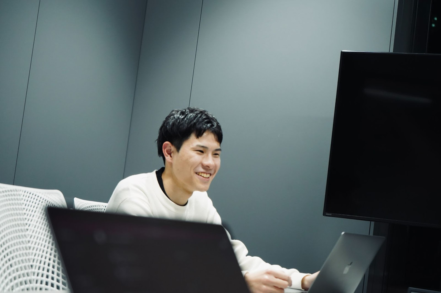 真庭:僕は高校生くらいの時から、パソコンを使って仕事をしたいと思っていました。大学生になって、本格的にプログラミングの能力を身につけるため、実務経験を得るための通過点としてオンラインメンターサービスを使い始め、その後、フォースタに入社しました。また大学で経営学を専攻しているので、日本のスタートアップ界隈の知見も得られるのではないかと考え、フォースタに応募しようと思いました。