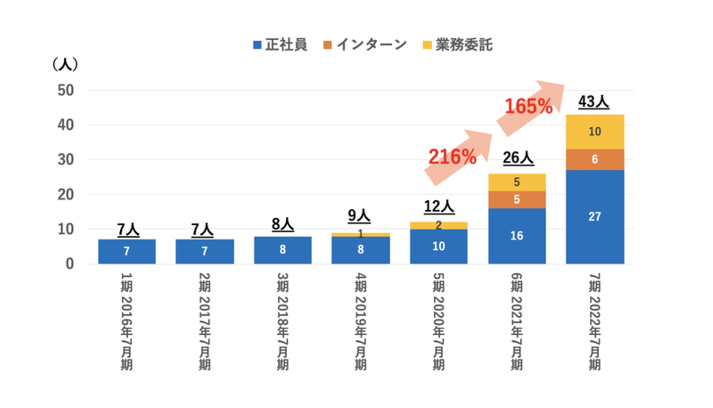3ヵ年ミッションにある通り、2025年に正社員だけで100人の組織を目指しているので、絶賛採用強化中です。