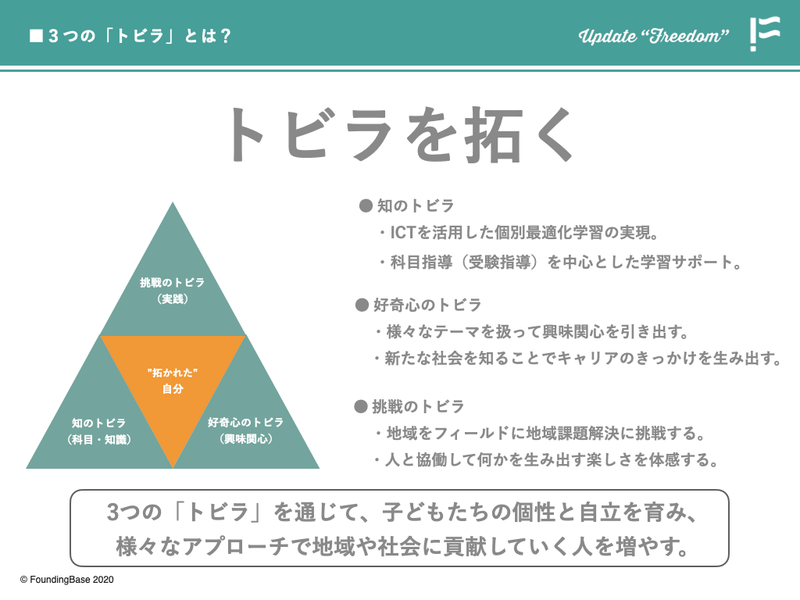 放課後塾ハルでは、FoundingBaseが掲げる3つのトビラを拓くサポートを実施していきます。