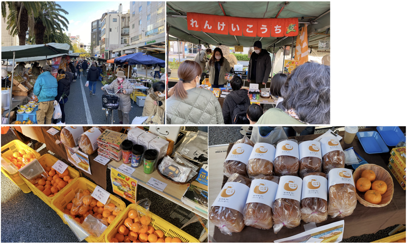 コロナ禍の影響を受け一時は客足が遠のいていましたが、今回の日曜市は2021年最後とあって観光客・地元客で賑わっており、私たちは、東洋町特産のぽんかんや海の駅 東洋町オリジナル「ぽんかん食パン」を販売しました。