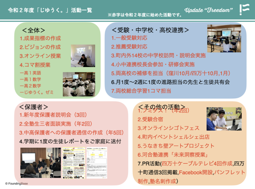 私が塾長になるタイミングで、FoundingBase教育事業の方針「トビラを拓く」が決まったことが大きかったです。この方針に紐づく形で活動や指標を決めていきました。