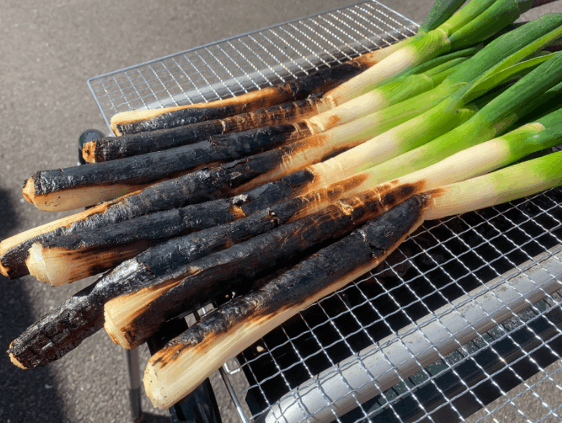 百聞は一見にしかずと言うことで、早速作ってみよう!作り方はとっても簡単です。BBQコンロもしくは家庭用グリルの上に綺麗に洗った白ネギを丸ごと乗せるだけ!