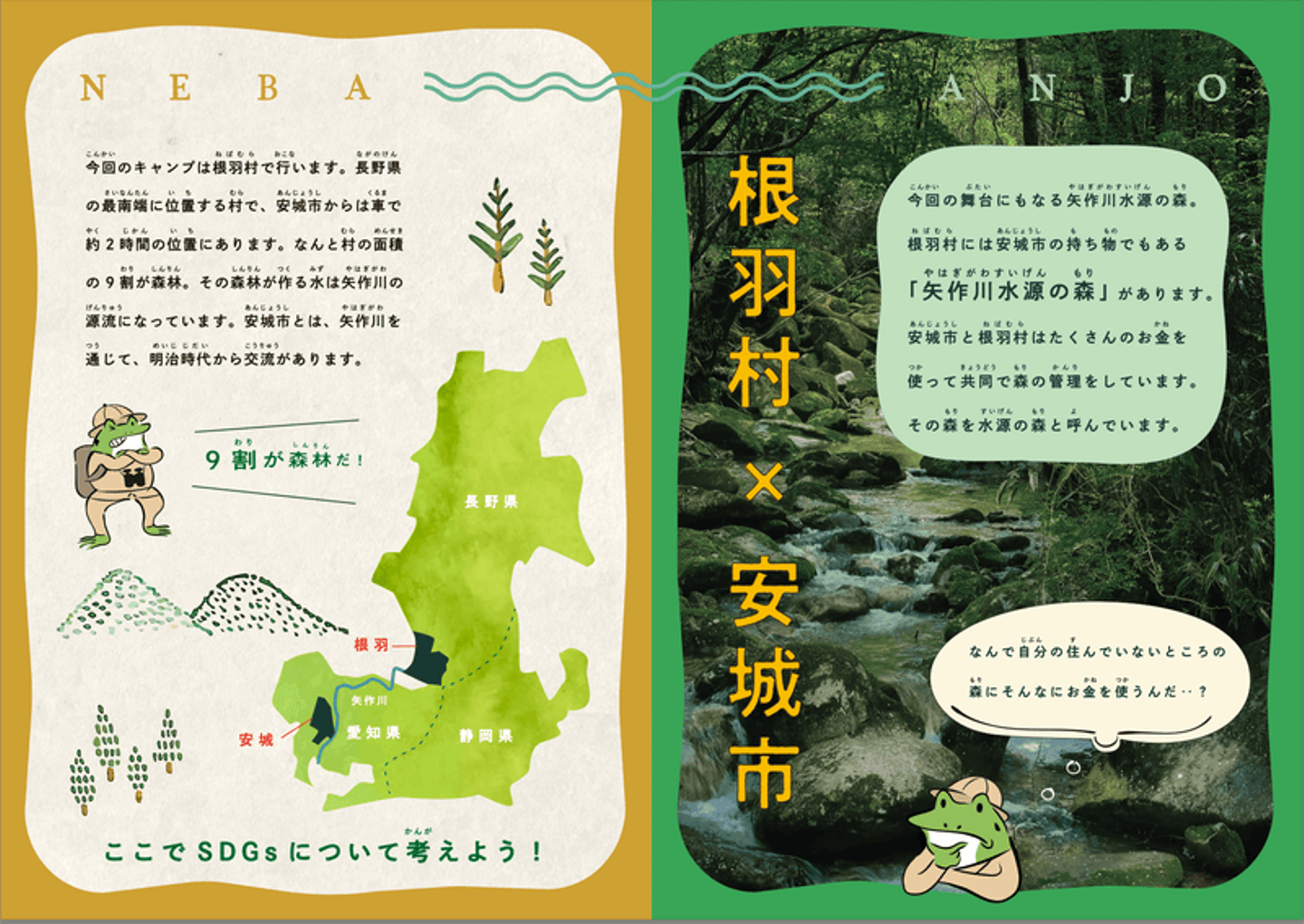 そんなことを経験をした安城市では、水やそれを作っている森を守ろうという想いが受け継がれてきました。そんな想いを未来も絶やさぬようにと、安城市と根羽村は数々の企画を行っています。