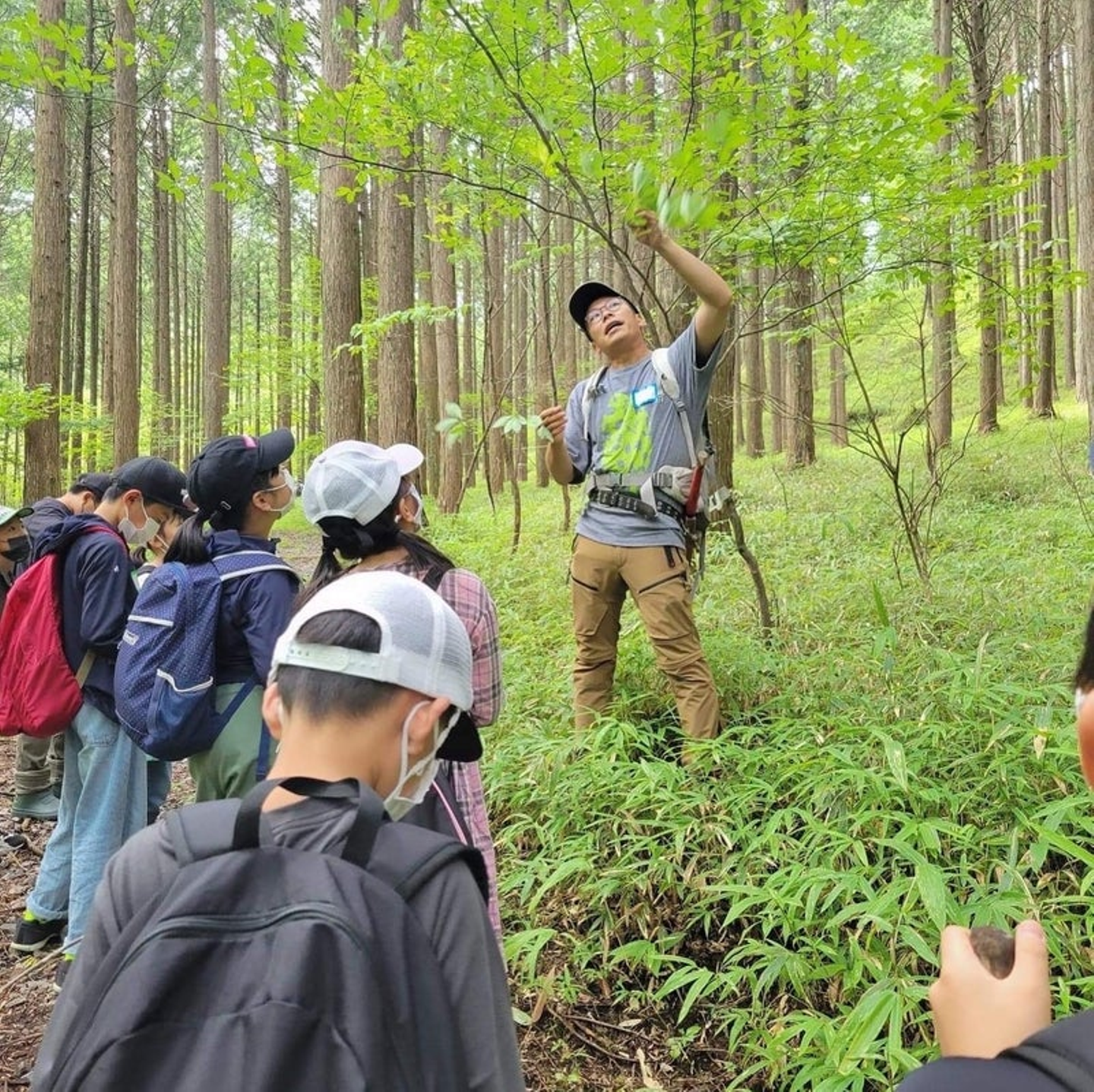 ものすごい長い枝を持ってくる子がいたり、ネバダコガエルという根羽村で発見されたカエルを見つけようとする子がいたり、ガイドの方から紹介された「クロモジ」という植物を大事そうに持っている子がいたり、普段なかなか見たり触ったりできないものに興味津々でした。