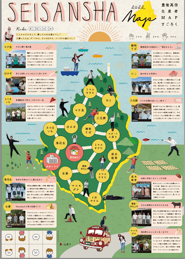 マップ作りのために、一次産業について学び、直接生産者の方々にインタビューすることで、生の声を受け取ってきました。マップ作りも、お正月を楽しく迎えてほしいとデザインのイメージやアイディアをLDXチームとミーティング。自分達の写真を取り入れた”生産者すごろくマップ”が完成しました。また、マップ作りの支援金を募るためクラウドファンディングにも挑戦。地元の方に自分達の取り組みや支援を伝えて回りました。