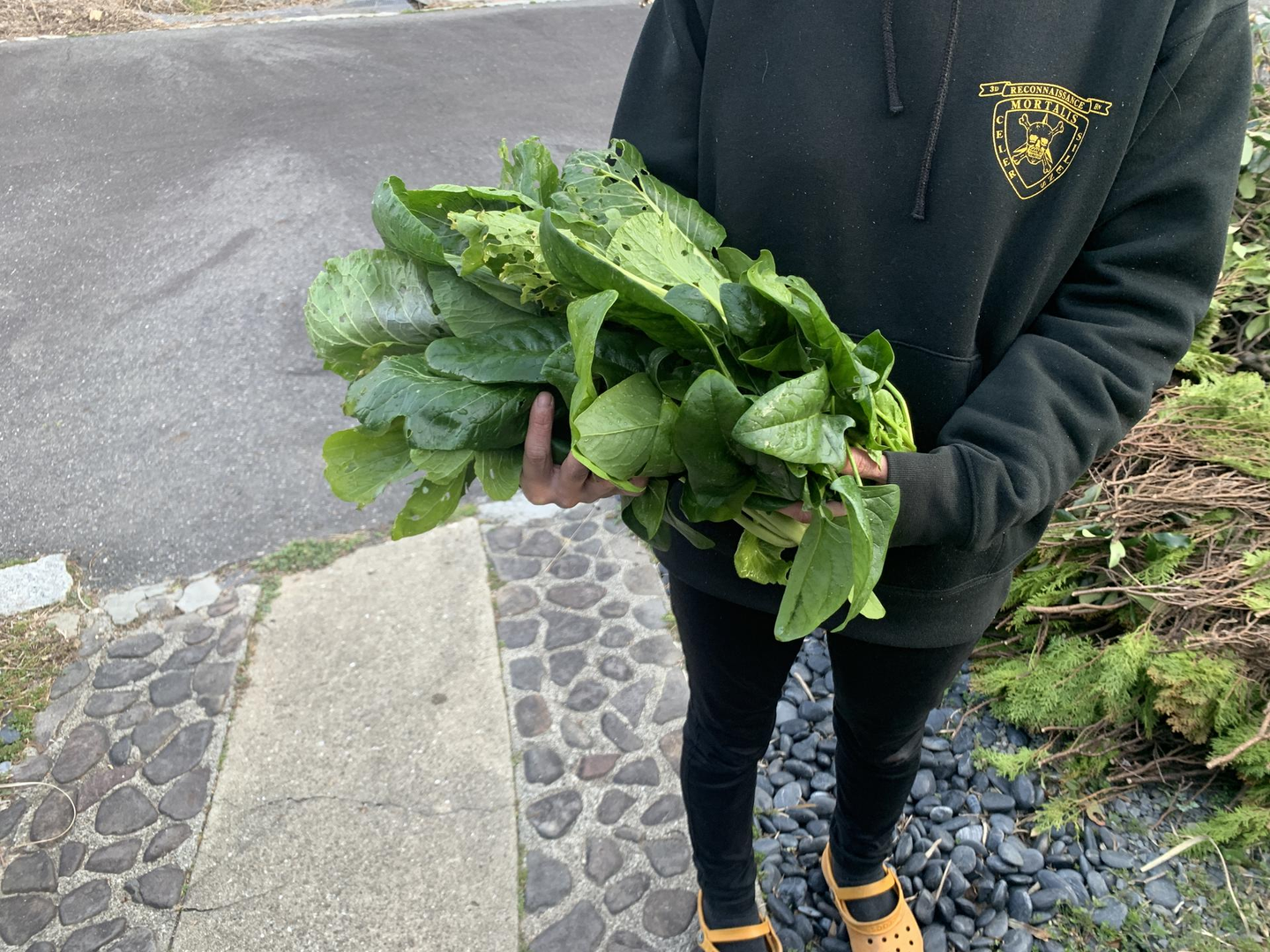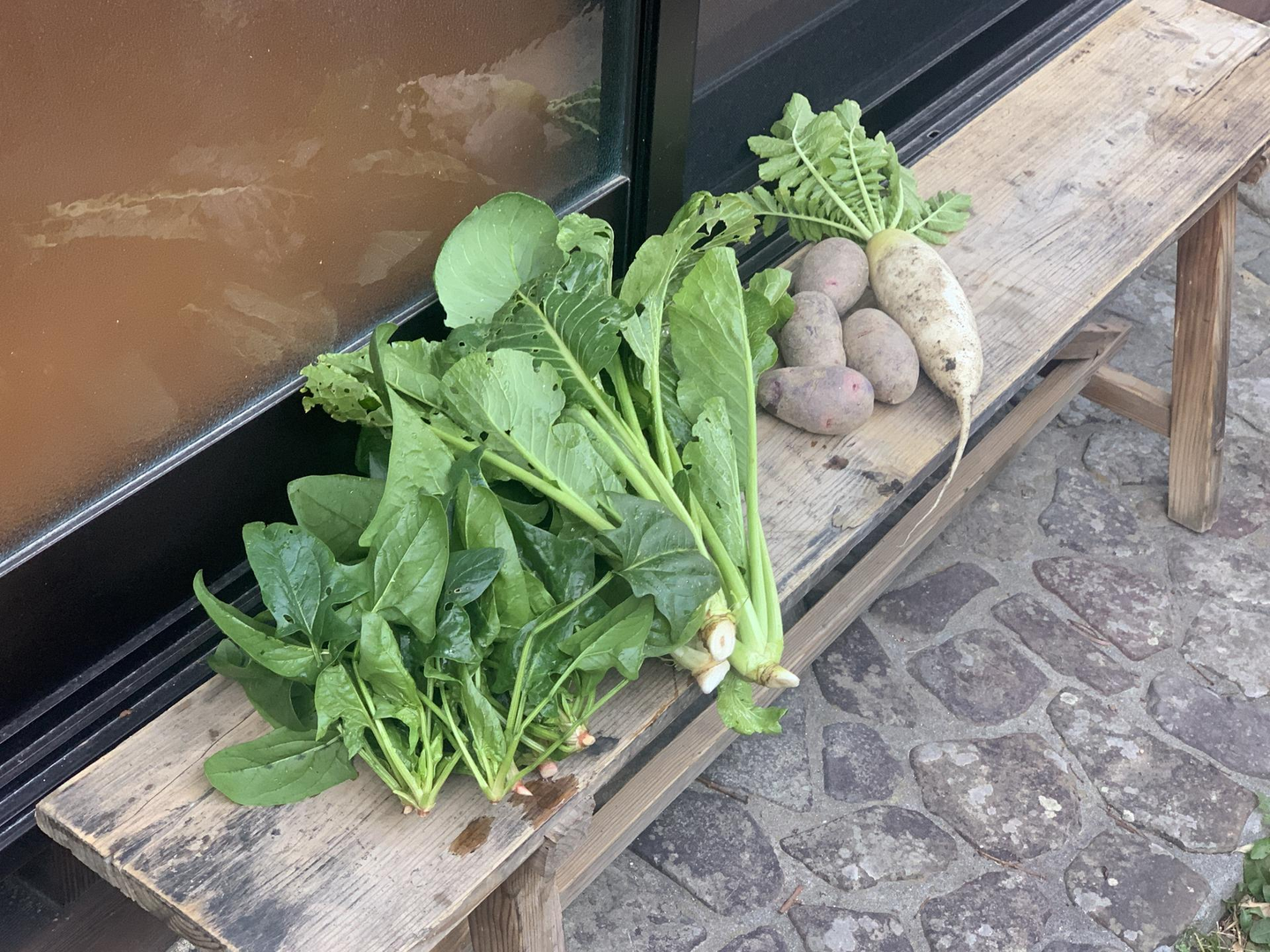 そして、広大な庭では自然農という手法で家庭菜園をされています。自然をコントロールするのではなく、自然と共生する考えに基づき始められ、すでに大根、白菜、じゃがいもなど様々な野菜を収穫されています。