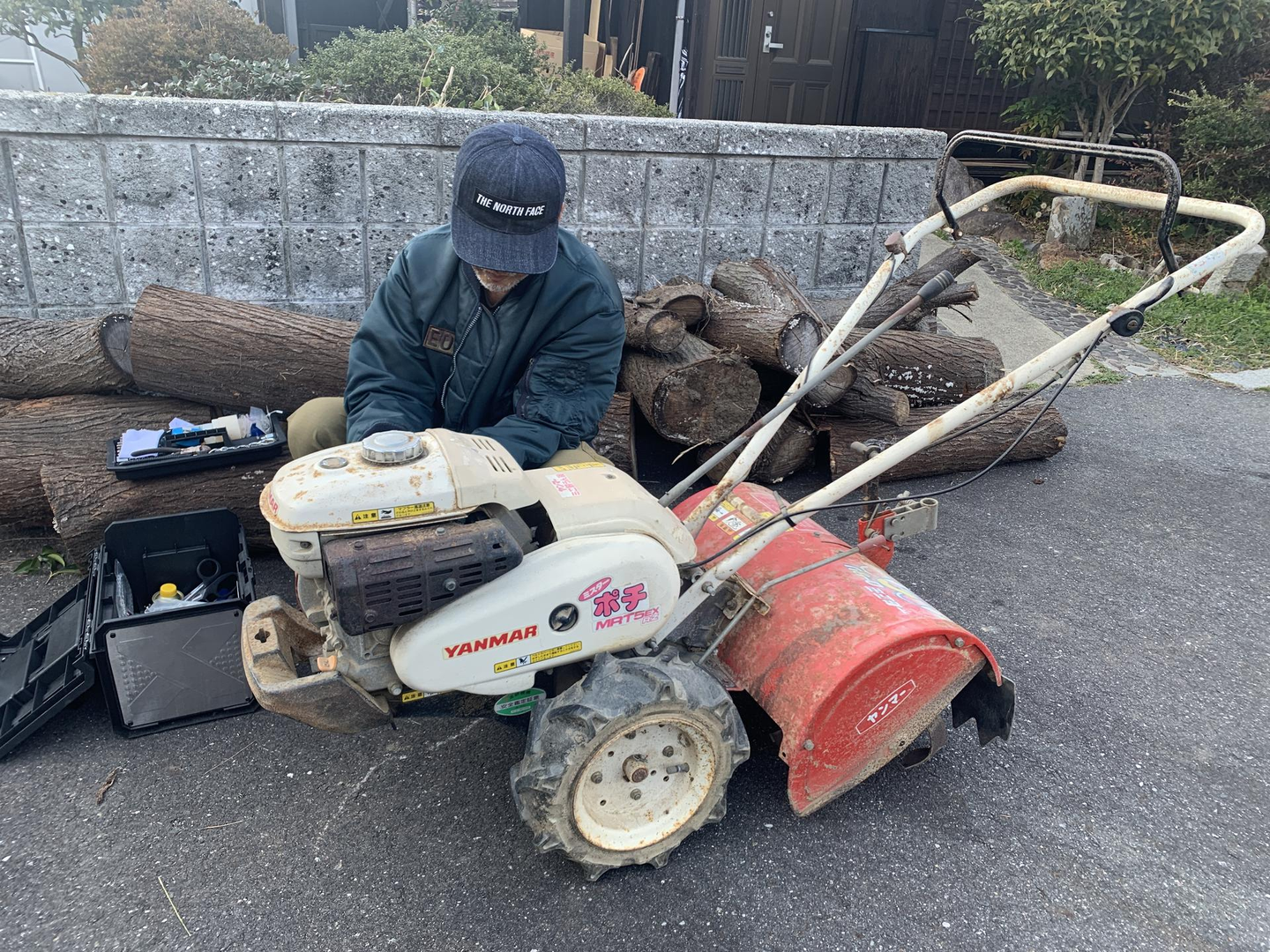 ある日の打ち合わせのこと。約束の時間に到着したのですが、三好さんがいらっしゃらず、どこにいるんだろうと思っていたところ。。。 なんと!私達のために耕運機を他所からもらってきてくださいました! 実はメンバーの一人が家庭菜園を本格的に始めたいと以前話していたことを覚えていて、もらってきてくださったそうです。 メンテナンスまでしていただいて、本当に感謝です!