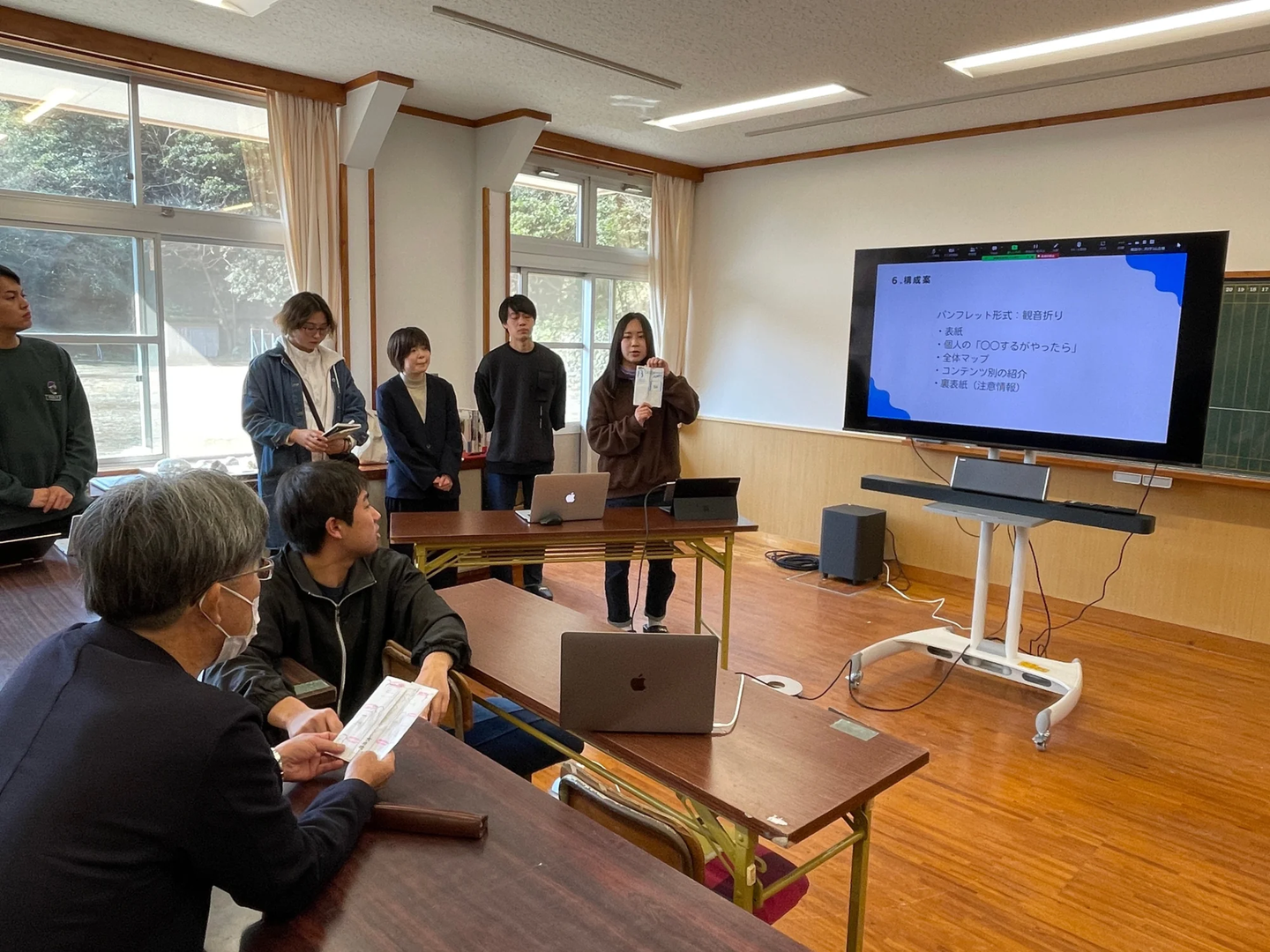 1週間の滞在を通して大学生は、「観光消費額を増やす」ことをゴールに、その手段としてパンフレットを企画し、滞在の最後に大月町役場の方、FoundingBaseマネージャー陣へプレゼンします。町の様々な方から話を聞き、町の各所を周りながら、地域の魅力や課題を理解。まちと向き合う中で自分自身とも向き合い、何度も何度も議論を重ね、時には衝突、涙もしながら企画として形づくる過程は、プログラムが終わった後も大月町に関わり続けてくれる経験になったのではないかと思います。