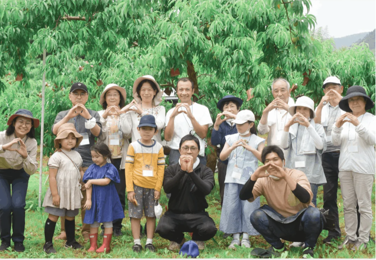 春には花を咲かせた桃の木の下でお花見会をしたり、農家さんとお話しし協力して、袋掛け作業(果実を強風や強い日差しから保護し、傷や病害虫の被害から守る)をしたり。美味しく育った果実をみんなで収穫、大切に味わい楽しみます。