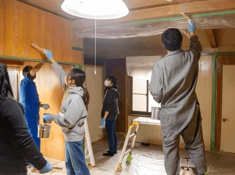 参加者は、シェアハウスとして今後活用が予定される古民家のDIYだけでなく、まちや古民家の歴史、由来を学んだほか、さらに里山の風景が広がる河川敷でのテントサウナや、地域の祭りに参加するなど、まちの理解を深めつつ、建物に命を吹き込んでいきました。