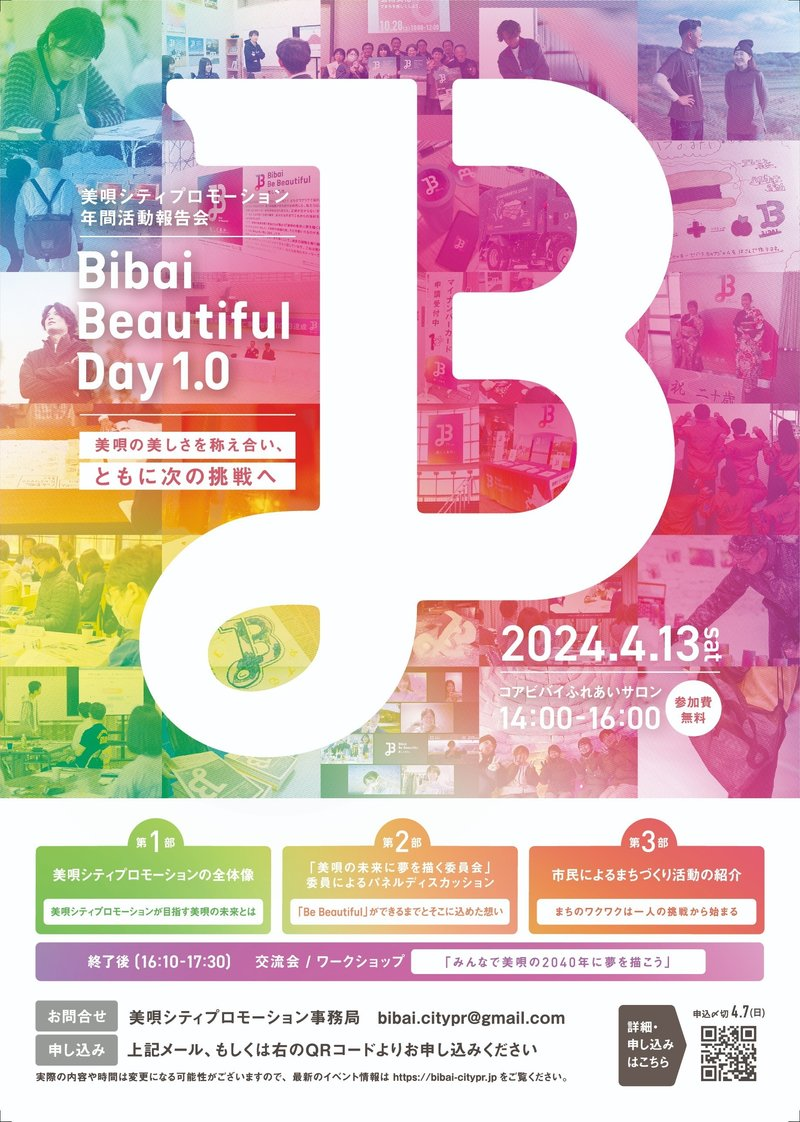 4月13日(土)に、美唄市の複合施設・コアビバイの一画にて、美唄シティプロモーション年間活動報告会「Bibai Beautiful Day 1.0」を実施しました。