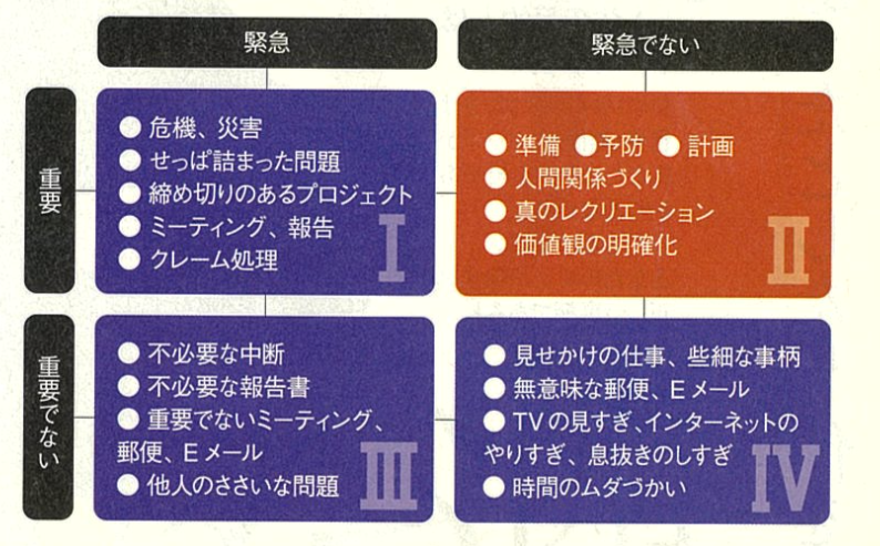 そして実際に計画を立てるときは第二領域に入ることを優先的に組むべきである。