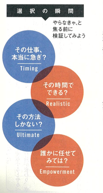 卓越した生産性を実現するには、人生において最も重要なことは何かを突き止め、優勢して実行することが重要である。簡単そうにみえるが、多くの人は決して重要ではない事項に時間とエネルギーを消費し、卓越した生産性を実現しているとは言い難い。なぜ最も重要なことを優先してできないのだろうか。 それを紐解くために緊急軸と重要軸の2軸で整理をする。