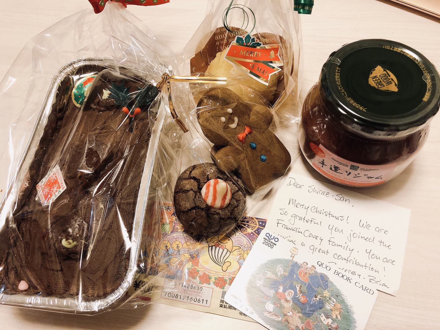 最後に、社長の奥様から社員全員のために一人じゃ食べきれないほどの焼き菓子をプレゼントいただきました!その包みの中には社長からのメッセージカードや、クオカード2000円分、そして年末ジャンボ宝くじが含まれていたのです!!!