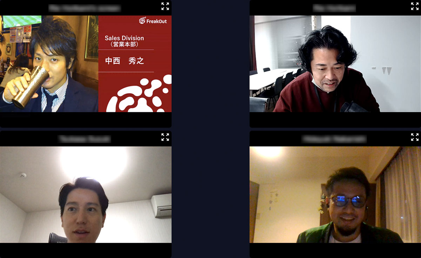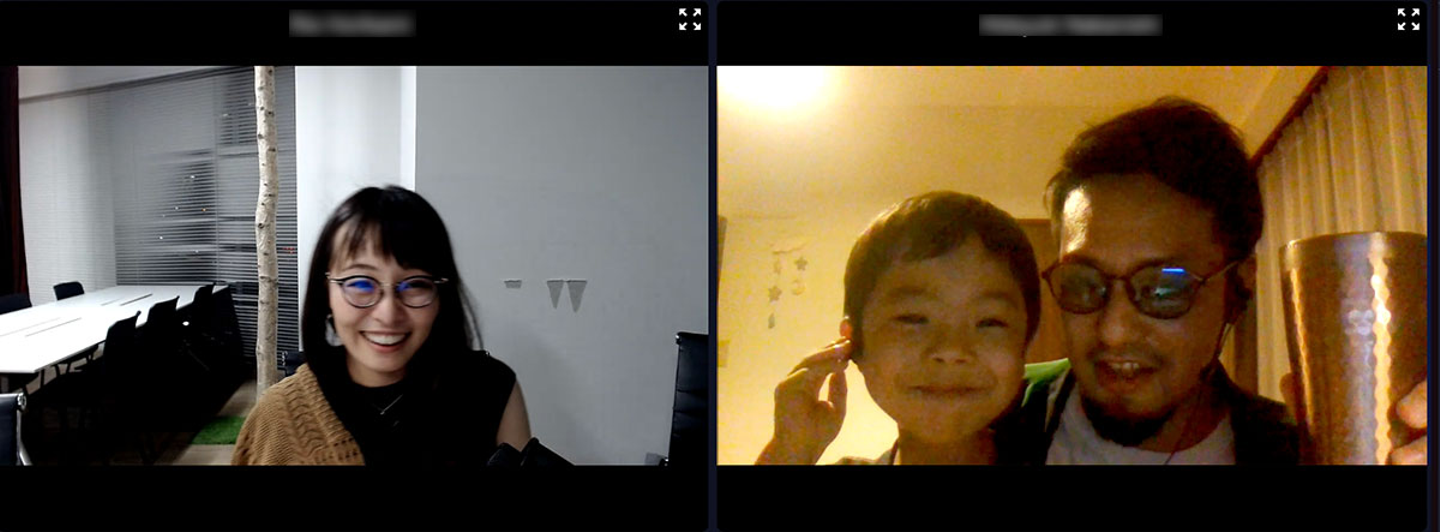 Remoでのオンライン納会は、hideさんとお子さんからの乾杯でスタート!