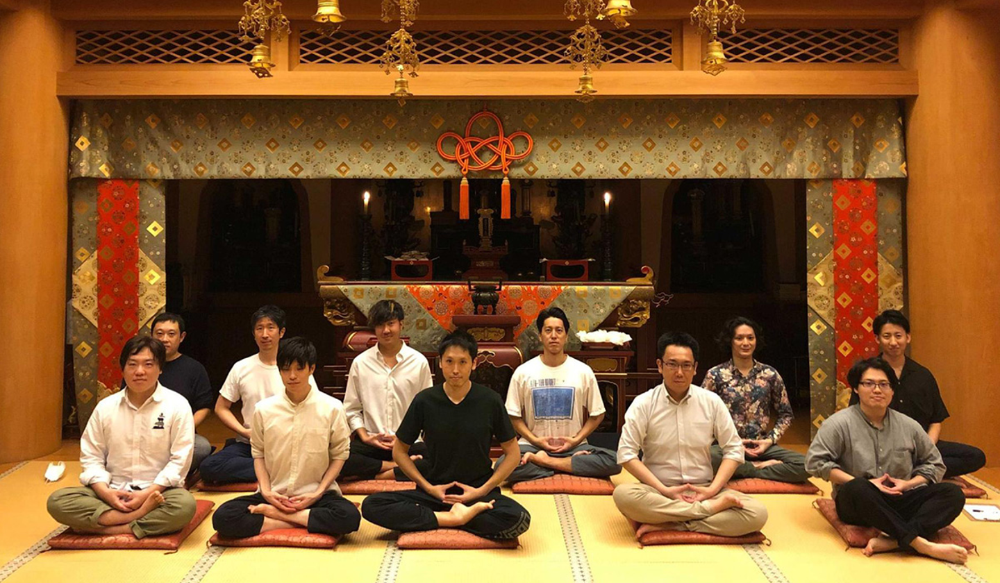 座布団の上であぐらをかいて姿勢を正し、精神統一。お寺に赴き、座禅をする部です。