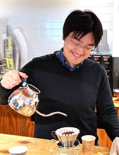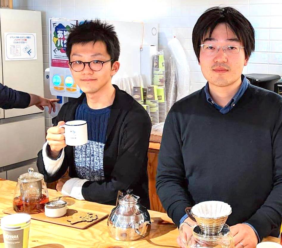 (左・お茶のスペシャリスト村原、右・珈琲のスペシャリスト山崎)