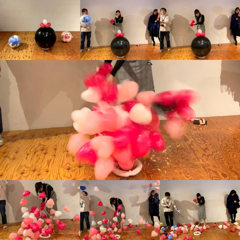 文字通り風船の爆弾が用意され、freeeメンバーで最も感謝が集まったnanae、maiyama、ucchiが美しく割ってくれました!!