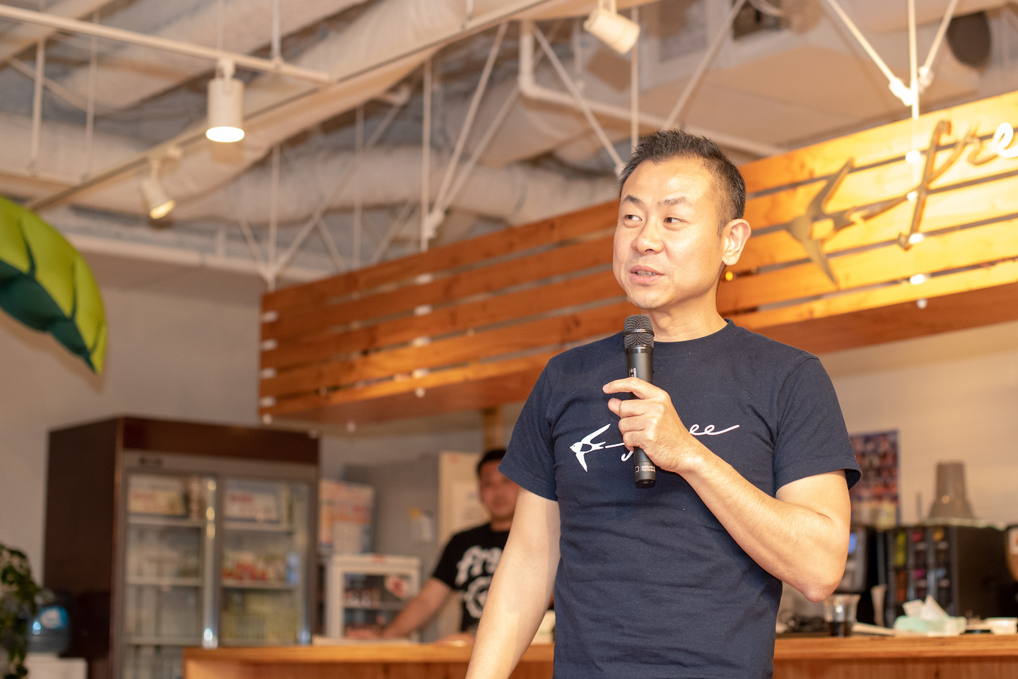 それは取締役・平栗遵宜(Nobuyoshi Hiraguri)によるオラオラキャラでの演説。