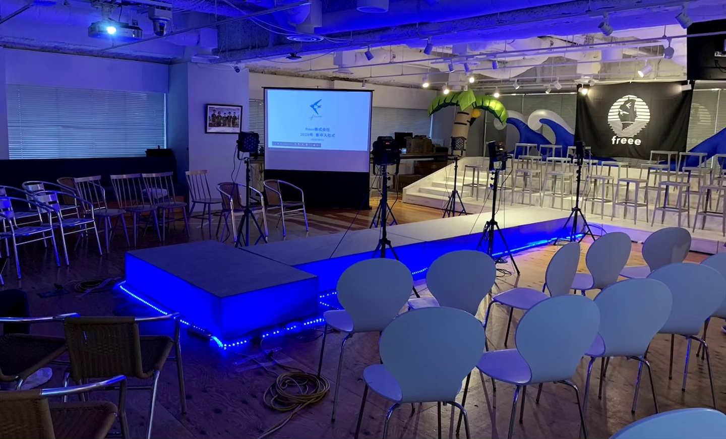 freee9階のasobibaに着くと、スタッフによって会場設営が行われていました。
