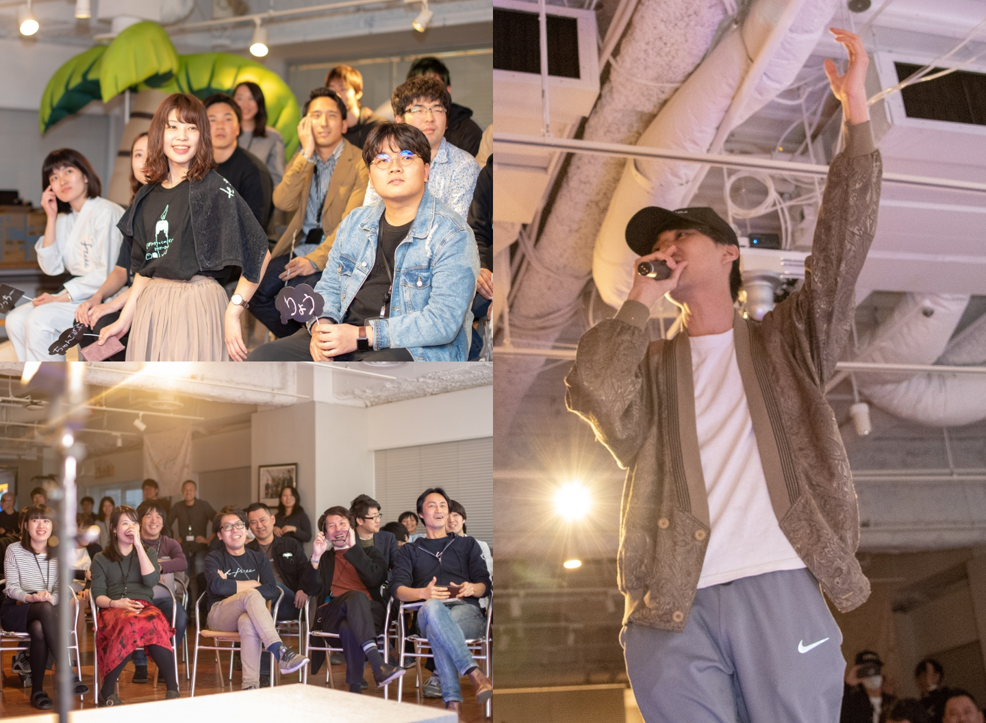 Yoshiki(左):僕は個性を活かして欲しいなと思っていて、やっぱりそう言うからには背中で見せないといけないと思うので、2年前に新卒でfreeeに入った僕の個性を活かすということで、特技のラップをしたいと思います。届け、新卒の皆さんへ。