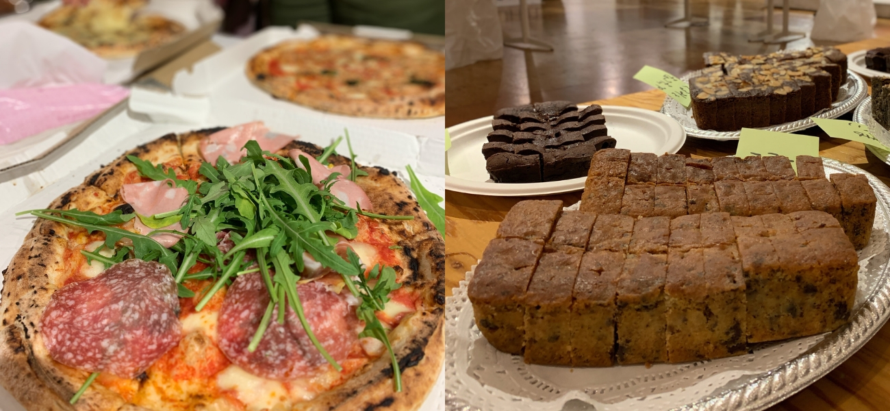会場にはピザや、freeeメンバー手作りのパウンドケーキが並びました。