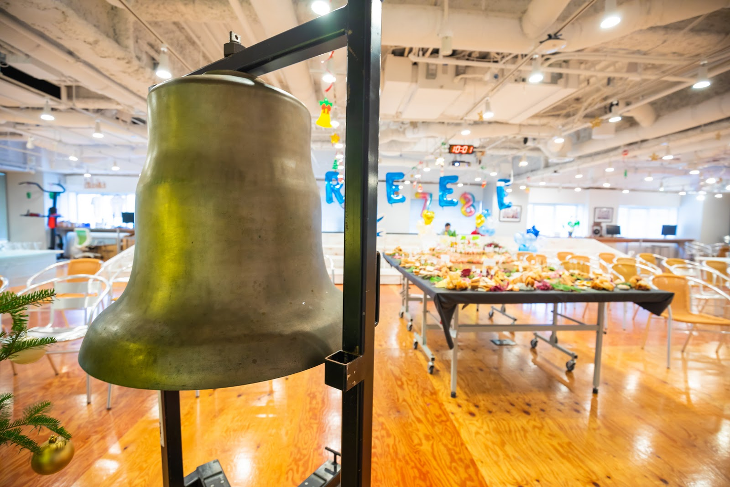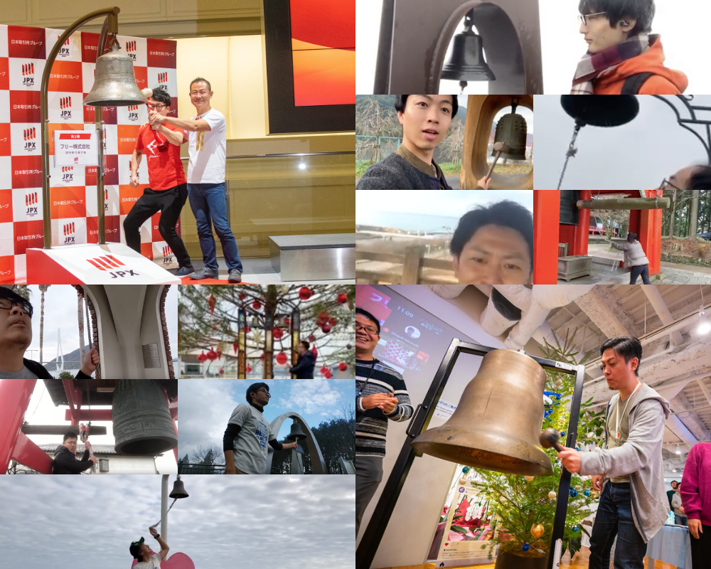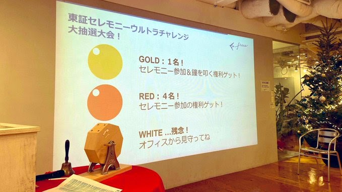 さらにはfreee本社にも東証と同じ鐘を用意し、東証と同時に鐘を鳴らします。