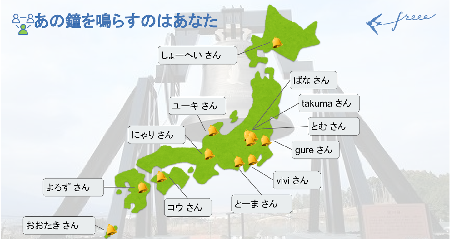 北海道から沖縄まで12名。鐘を鳴らすためだけに現地へ行きました!