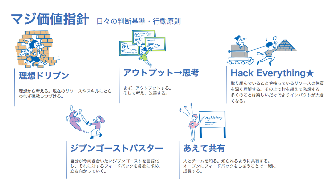 freeeではマジ価値(ユーザーにとって本質的な価値がある)を実際に届けるための重要な行動指針、『マジ価値指針』があります。