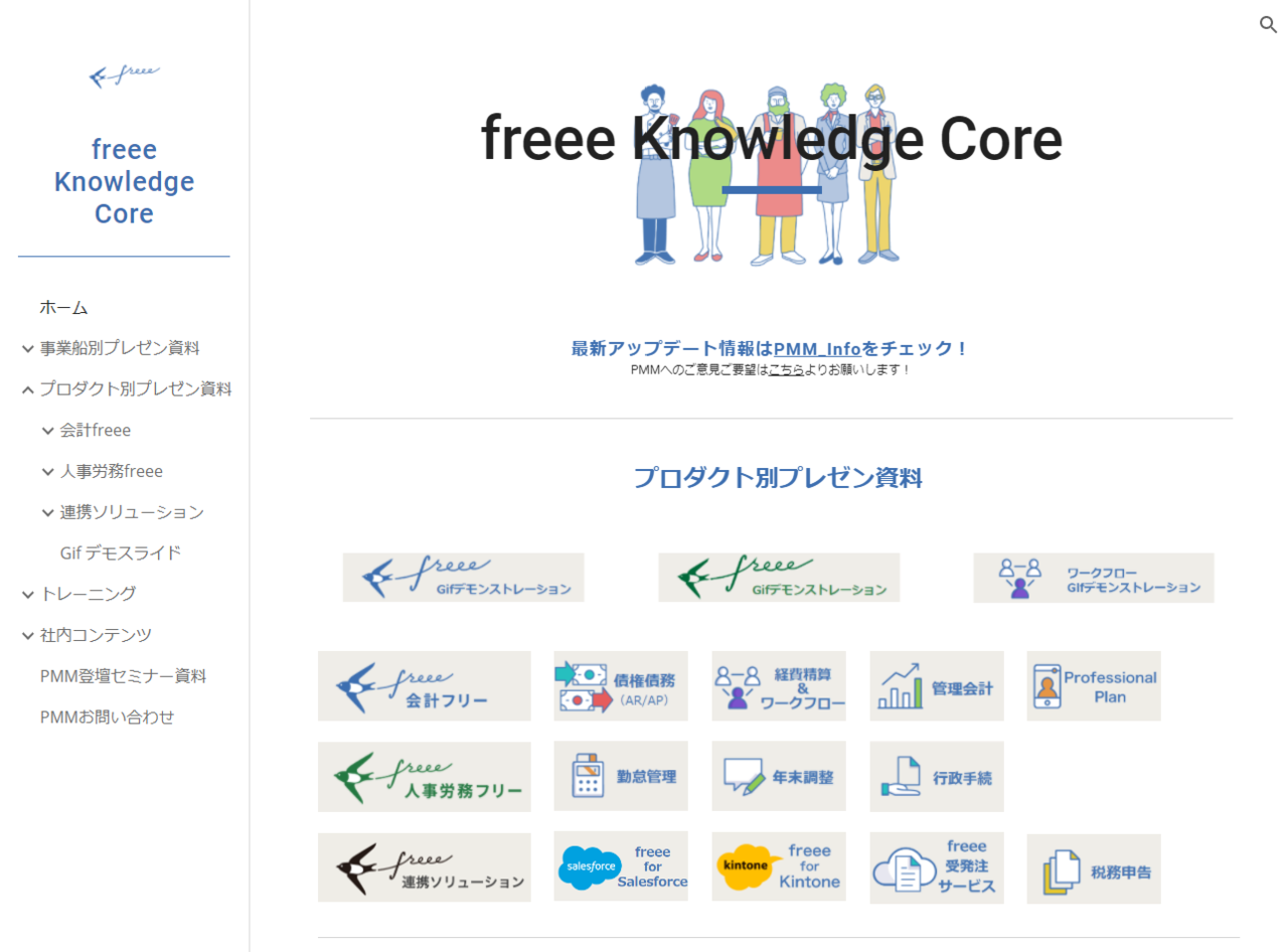 特に、事業部別の提案資料は、何度も各事業部のマネージャーやメンバーとディスカッションをして、ユーザーに刺さるコンテンツを考え作っていきました。また、同時並行で作成したコンテンツに全社員がいつでもアクセスできるよう「freee Knowledge Core」という社内イントラの作成を進めました。