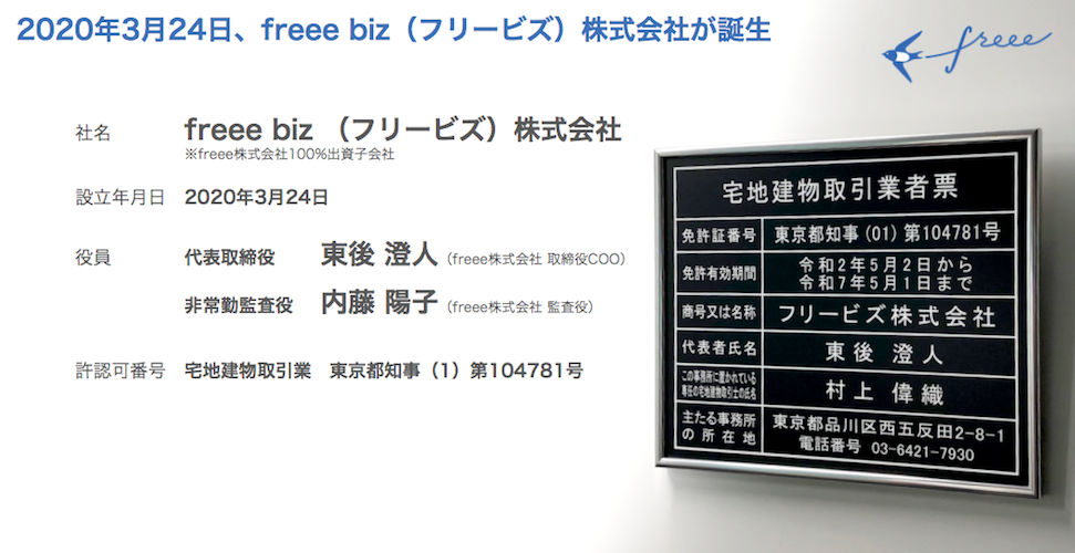 そしてfreeeは、福利厚生freeeの第一弾として社宅サービスを始めるにあたり、freee bizという子会社を立ち上げました。