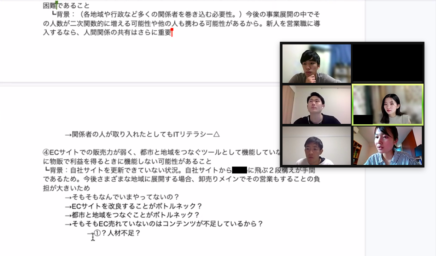 具体的には、できることは他のメンバーと違う視点から物事を見て意見を言うこと、苦手なことは人の話を批判的に聞いて素早く質問を投げかけることでした。特にインタビューの際にもっと積極的に質問できればよかったと思います」