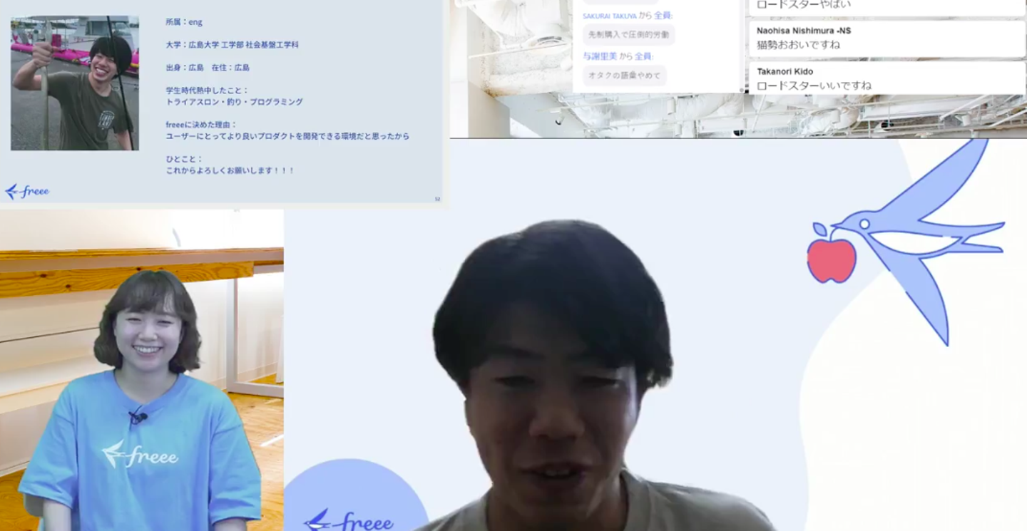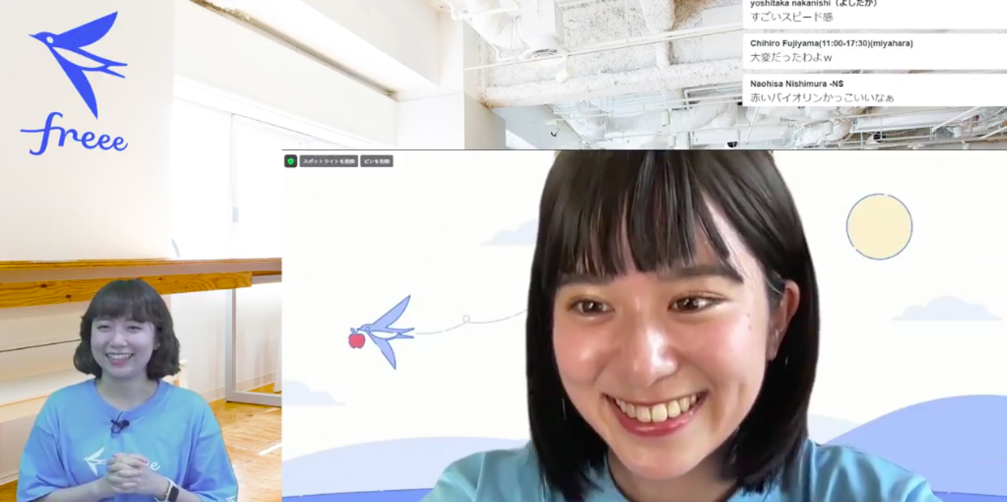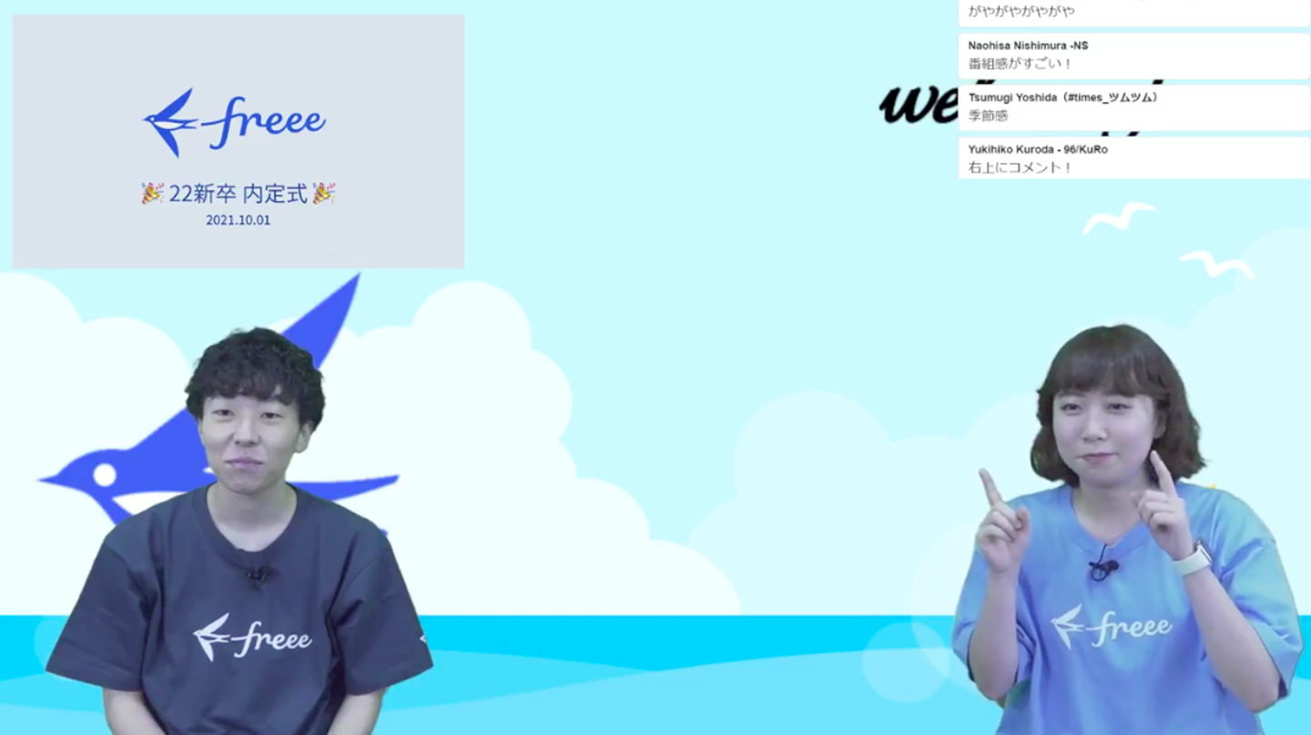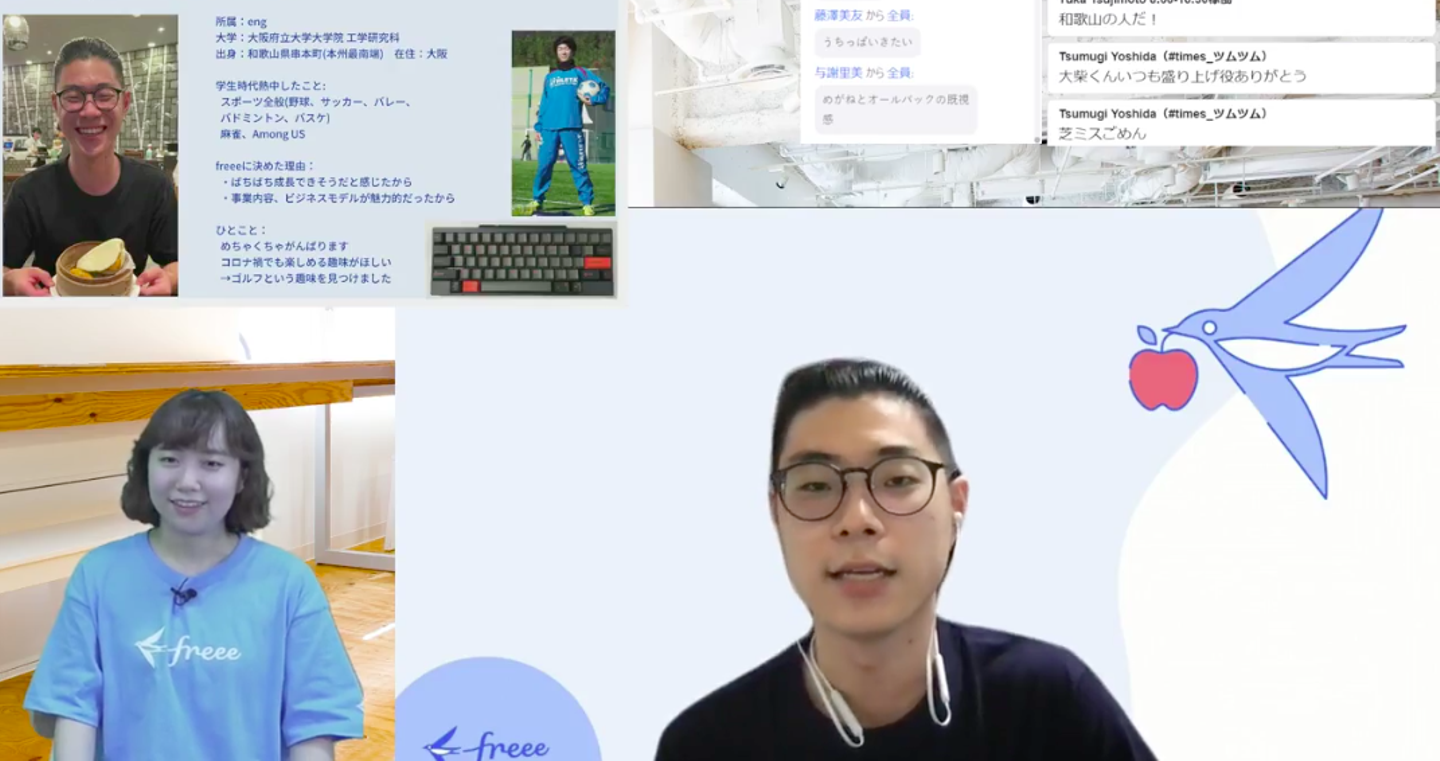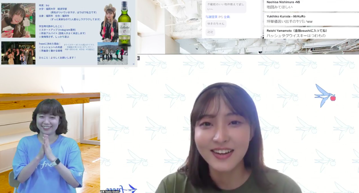 みんなfreeeを選んだ理由やこれからの意気込み、大学生活での思い出をなどを語ってくれ、コメント欄は終始ガヤガヤと賑わっていました。