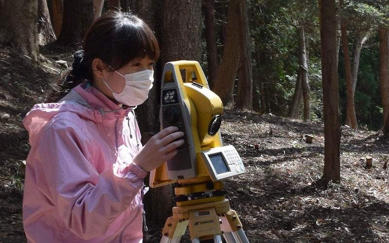 (▲大学時代、古墳を測量する今西)